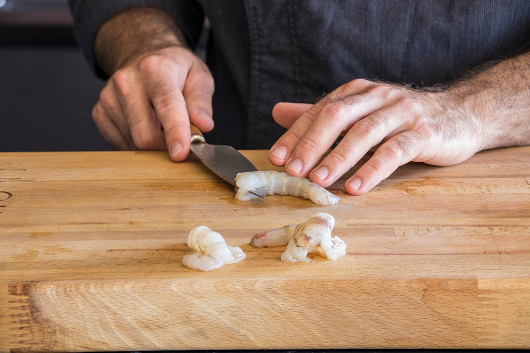 Ingredientes para el canelón de calabacín relleno de ricotta trufada y langostinos
