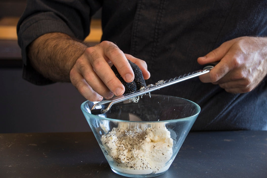 Una propuesta fresca, ligera y elegante donde la trufa de verano Laumont aromatiza una ricotta cremosa que se convierte en el relleno perfecto para finas láminas de calabacín. Coronado con langostinos en forma de mariposa y láminas de trufa, este plato es ideal como entrante gourmet para los meses cálidos.
