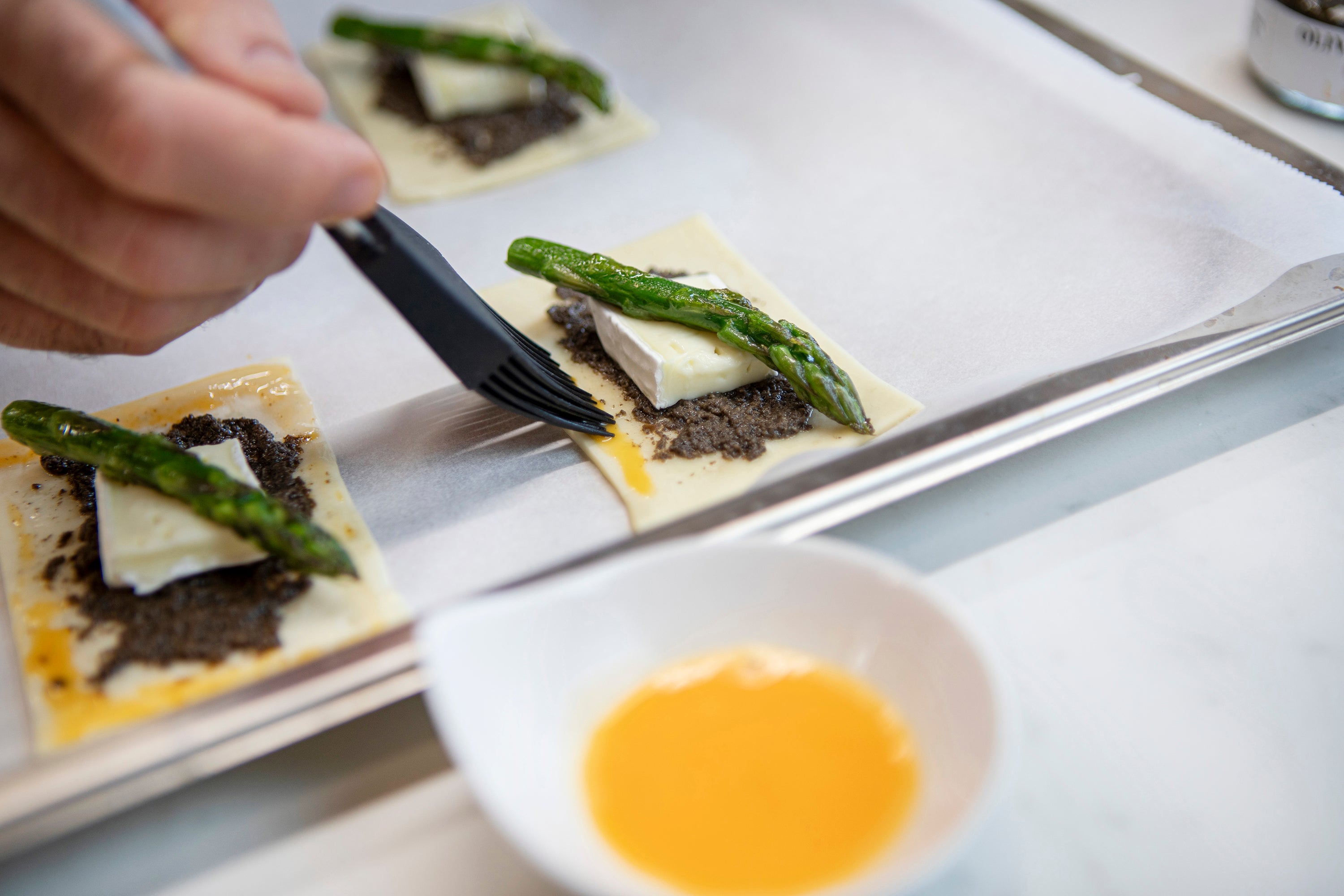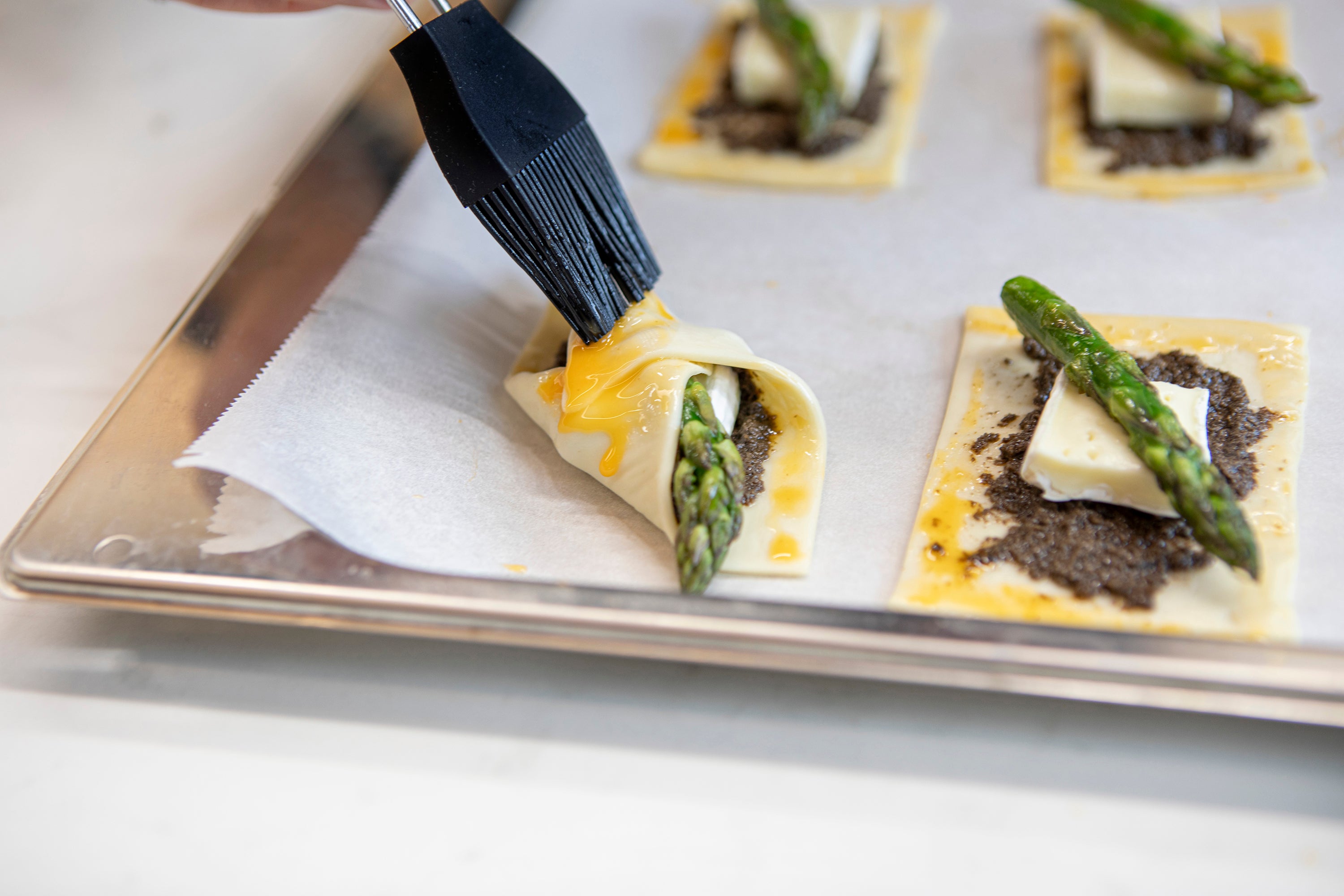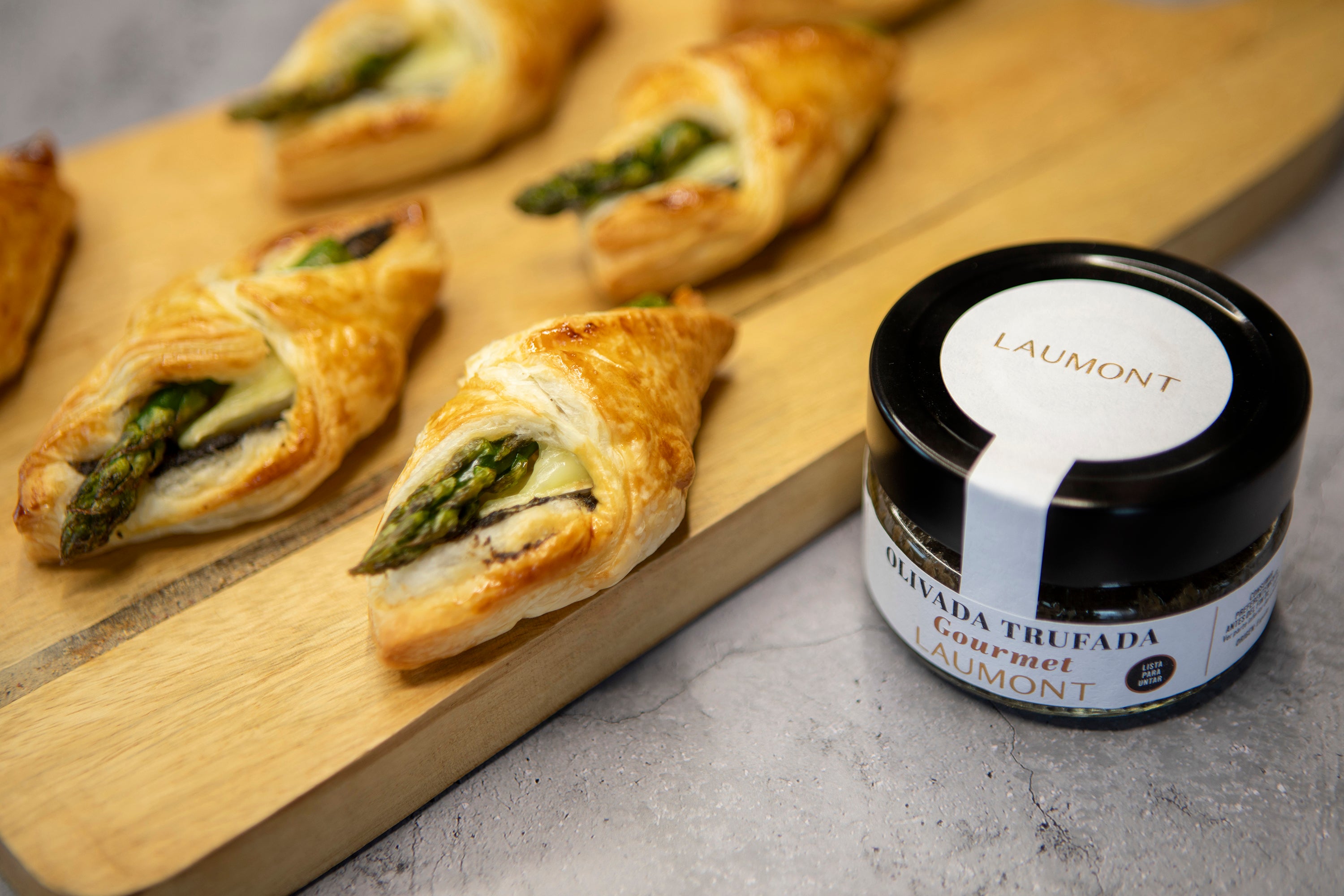 Este aperitivo de pasta de hojaldre con olivada trufada, brie y espárragos es una opción deliciosa y elegante para cualquier ocasión. La combinación de la olivada trufada Laumont con el queso brie cremoso y los espárragos dorados, todo envuelto en crujiente pasta de hojaldre, ofrece una explosión de sabores y texturas que seguro sorprenderán a tus invitados. ¡Una receta fácil de hacer y llena de sabor!