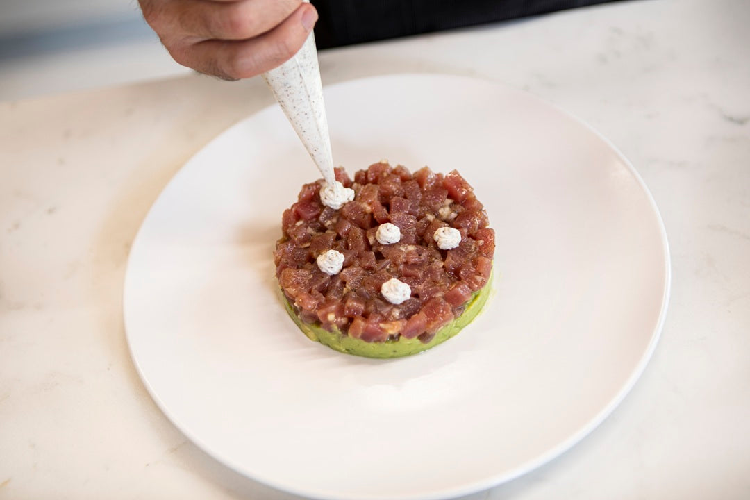 El Tartar de atún con salsa tartufata combina la frescura del atún rojo con la intensidad de la trufa, creando un entrante de alto nivel gastronómico. Gracias a la salsa tartufata de Laumont, el plato adquiere profundidad y aroma, mientras que el guacamole aporta frescura y contraste. Una receta moderna, equilibrada y visualmente espectacular, ideal para sorprender en ocasiones especiales.