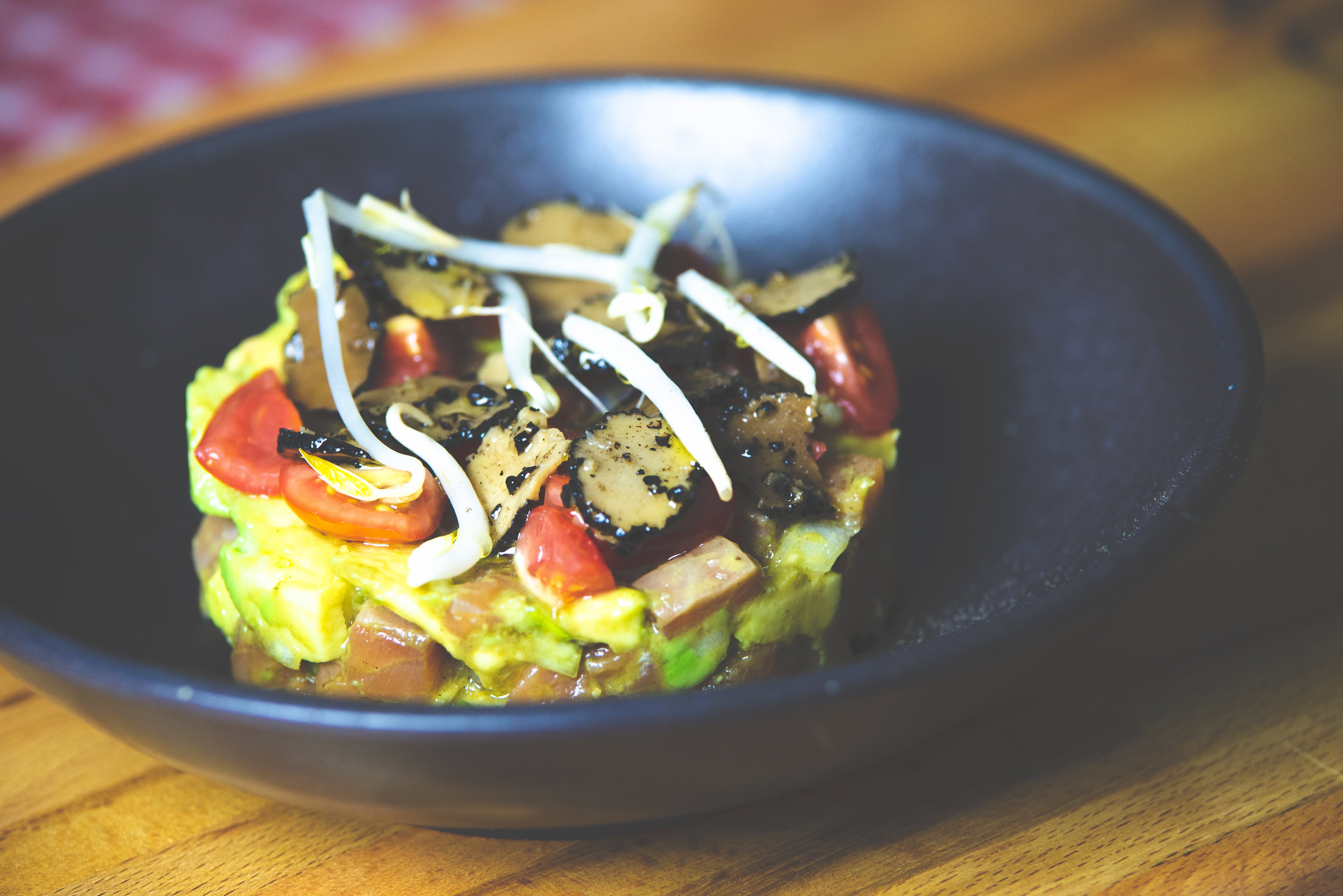 La intensidad marina del salmón se encuentra con la untuosidad del aguacate, el frescor cítrico y el perfume del carpaccio de trufa de verano Laumont, en una receta donde la ligereza y la elegancia se equilibran con precisión.