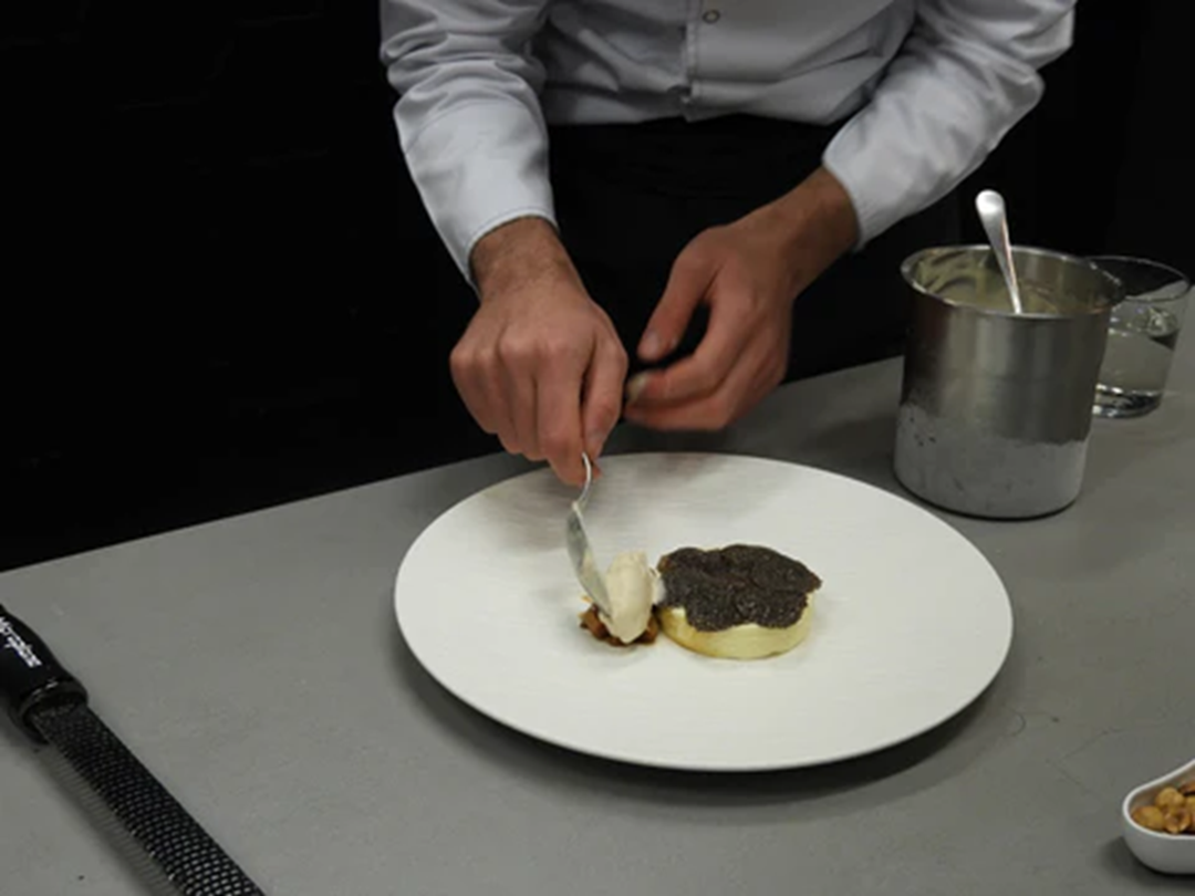 Cheesecake al vapor trufat amb gelat d'avellana i peres escalivades . Aquestes postres gurmet, creades per l'estudiant de cuina Eric Mayer en col·laboració amb l'Acadèmia Laumont, fusiona la delicadesa del cheesecake al vapor amb la intensitat aromàtica de la tòfona negra , un ingredient icònic de Laumont . El plat es completa amb un gelat casolà d'avellana torrada, peres escalivades al foc i un cruixent vel de cacau, formant una experiència de textures i sabors que homenatja l'alta rebosteria contemporània. Cada element està pensat per realçar l´aroma de la tòfona, protagonista indiscutible d´aquesta creació.