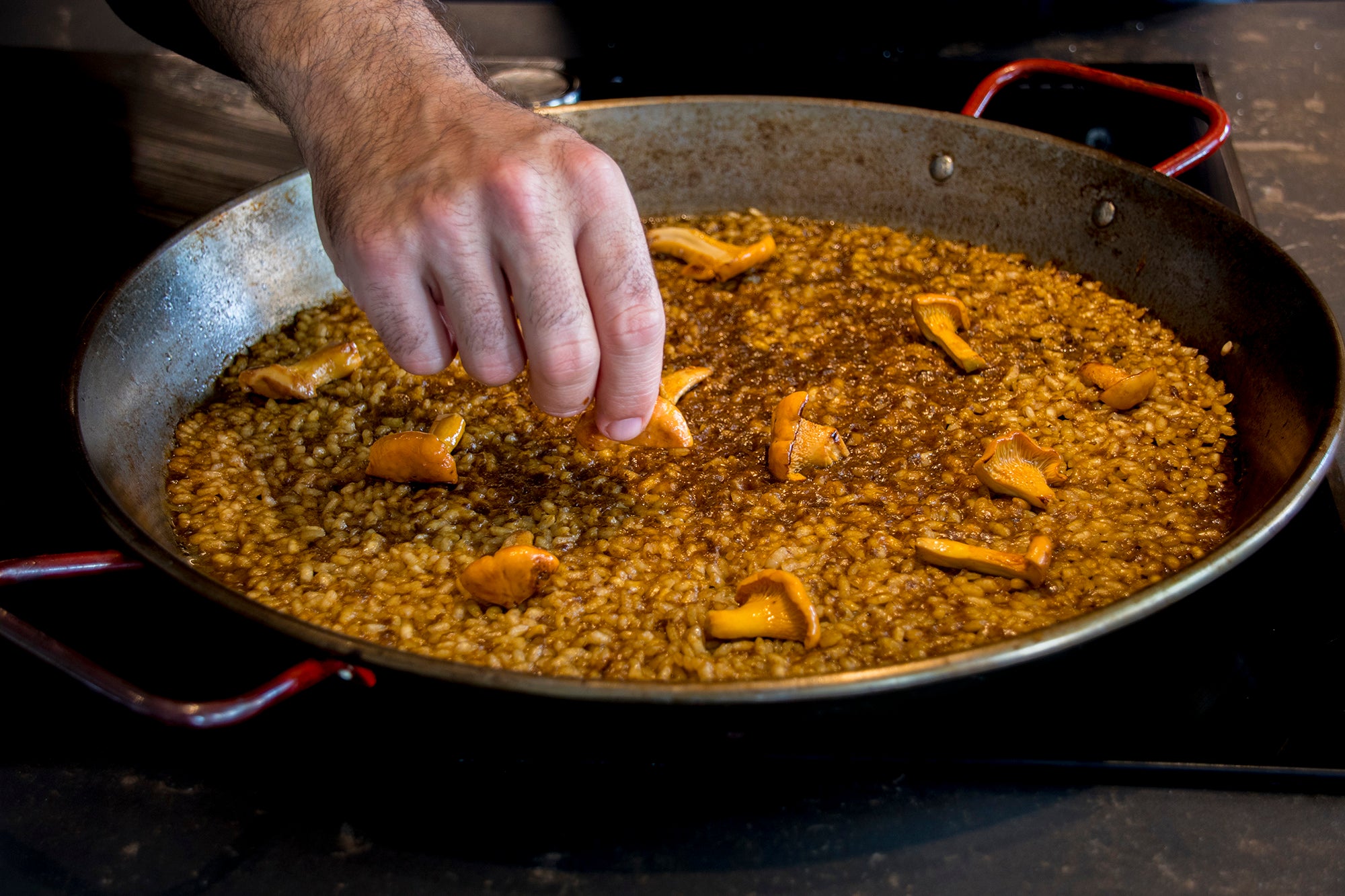 Arròs sec de ploma ibèrica, pop i rossinyols