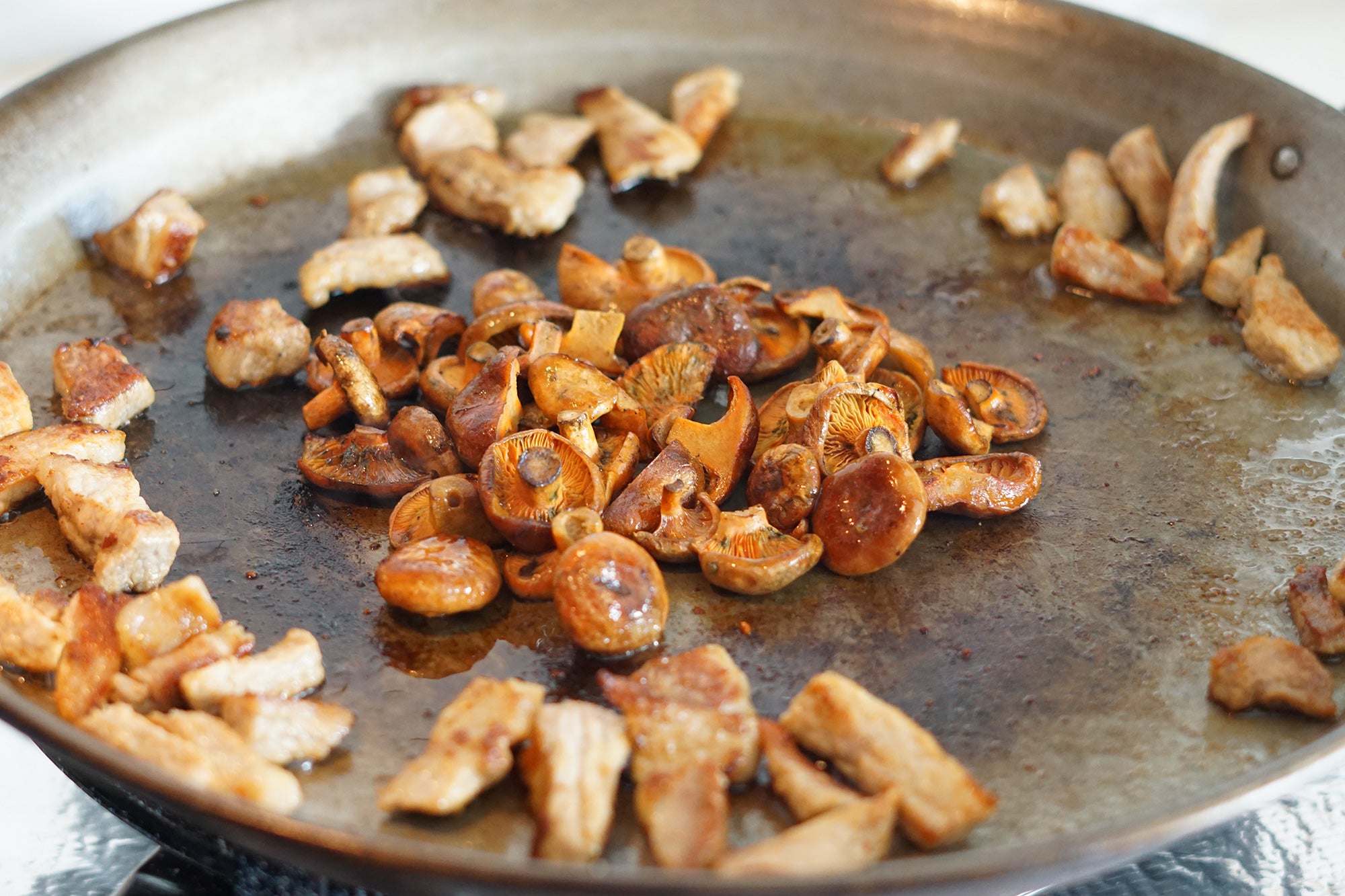 Ingredientes para el arroz seco de níscalos con presa ibérica