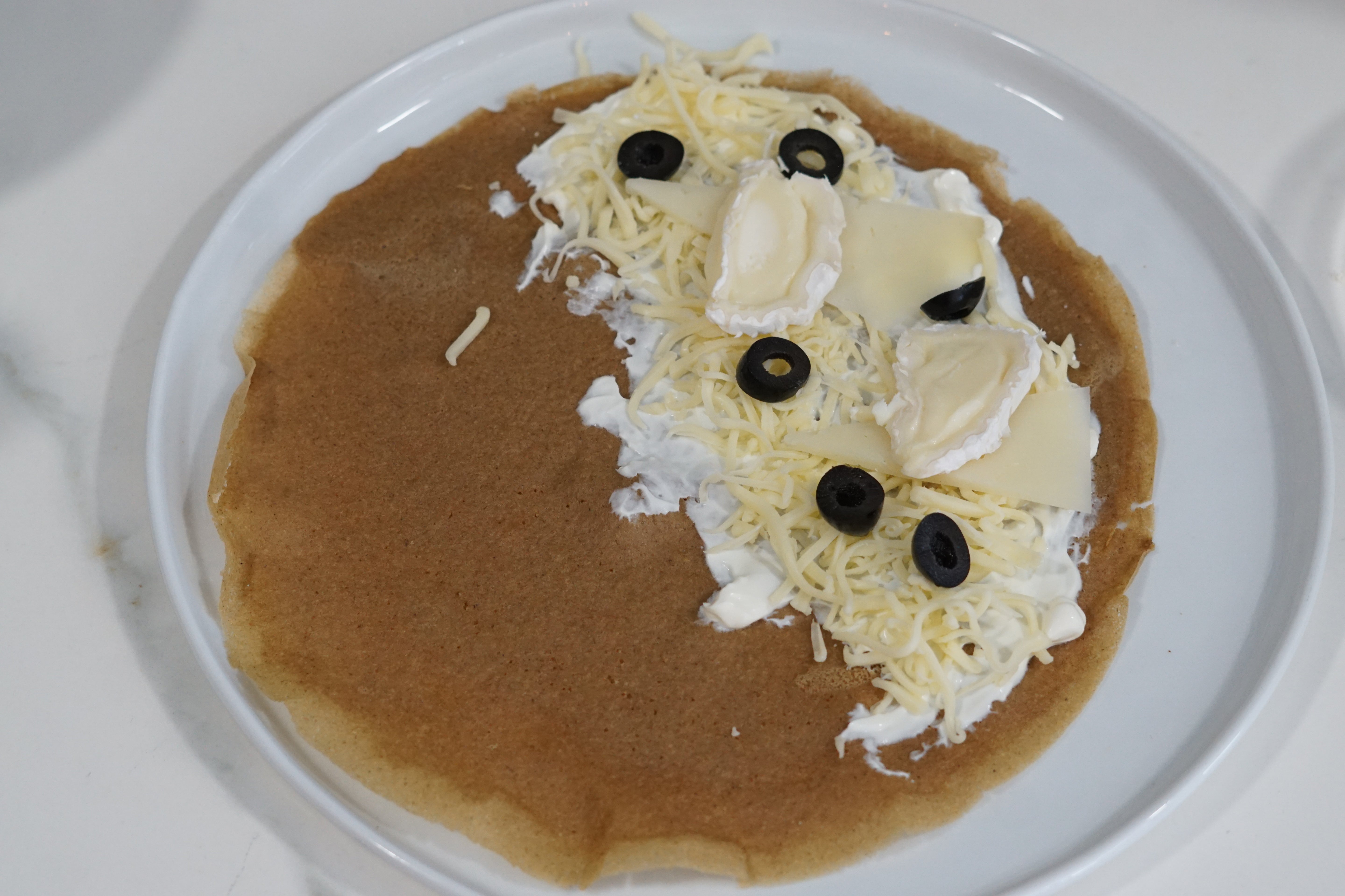 Una recepta que reinventa el clàssic crêpe salat amb l'aroma inconfusible de la farina de ceps Laumont . El farcit combina quatre tipus de formatge i el toc salí de l'oliva negra, coronat amb tòfona negra fresca per a un resultat càlid, untuós i aromàtic.