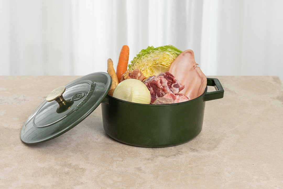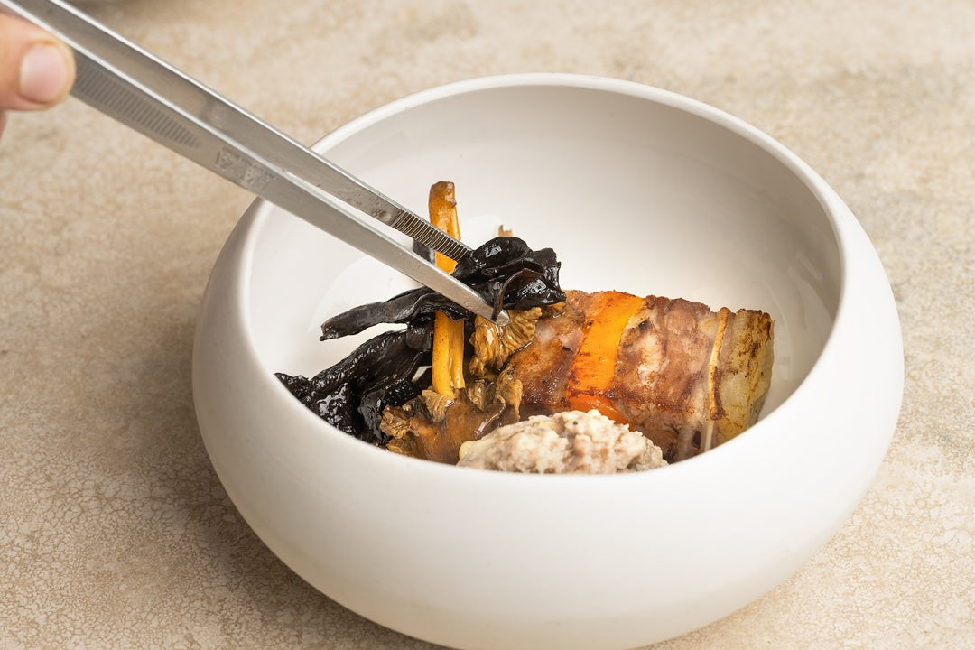 L´escudella és un plat tradicional català ple de sabor i tradició. En aquesta versió, incorporem bolets trompeta de la mort i corriols Laumont , juntament amb tòfona negra, per aportar un toc gurmet i aromàtic. La terrina de careta de porc afegeix textura i profunditat, tot creant un plat equilibrat i sofisticat que respecta l'essència de la cuina clàssica.