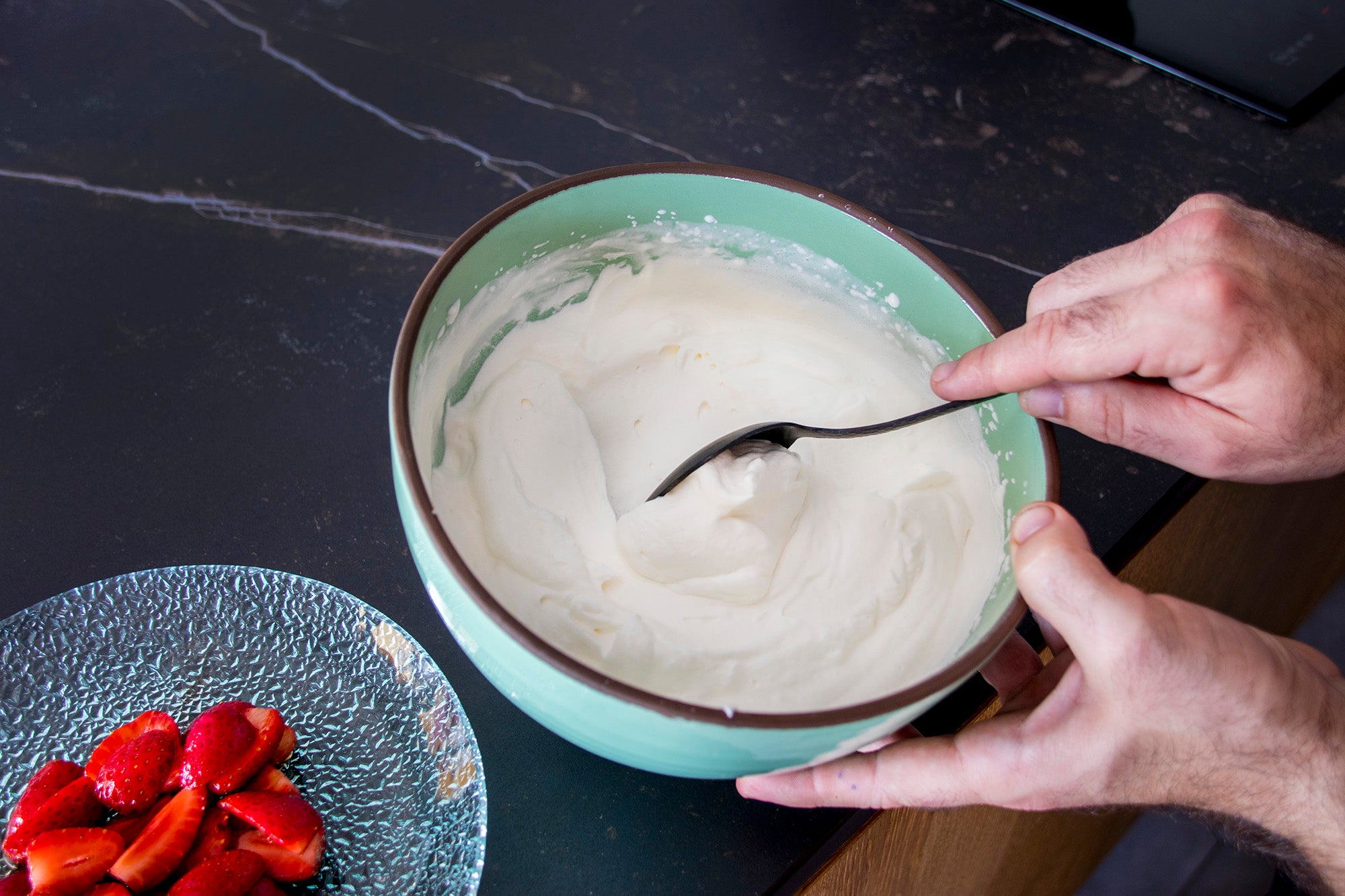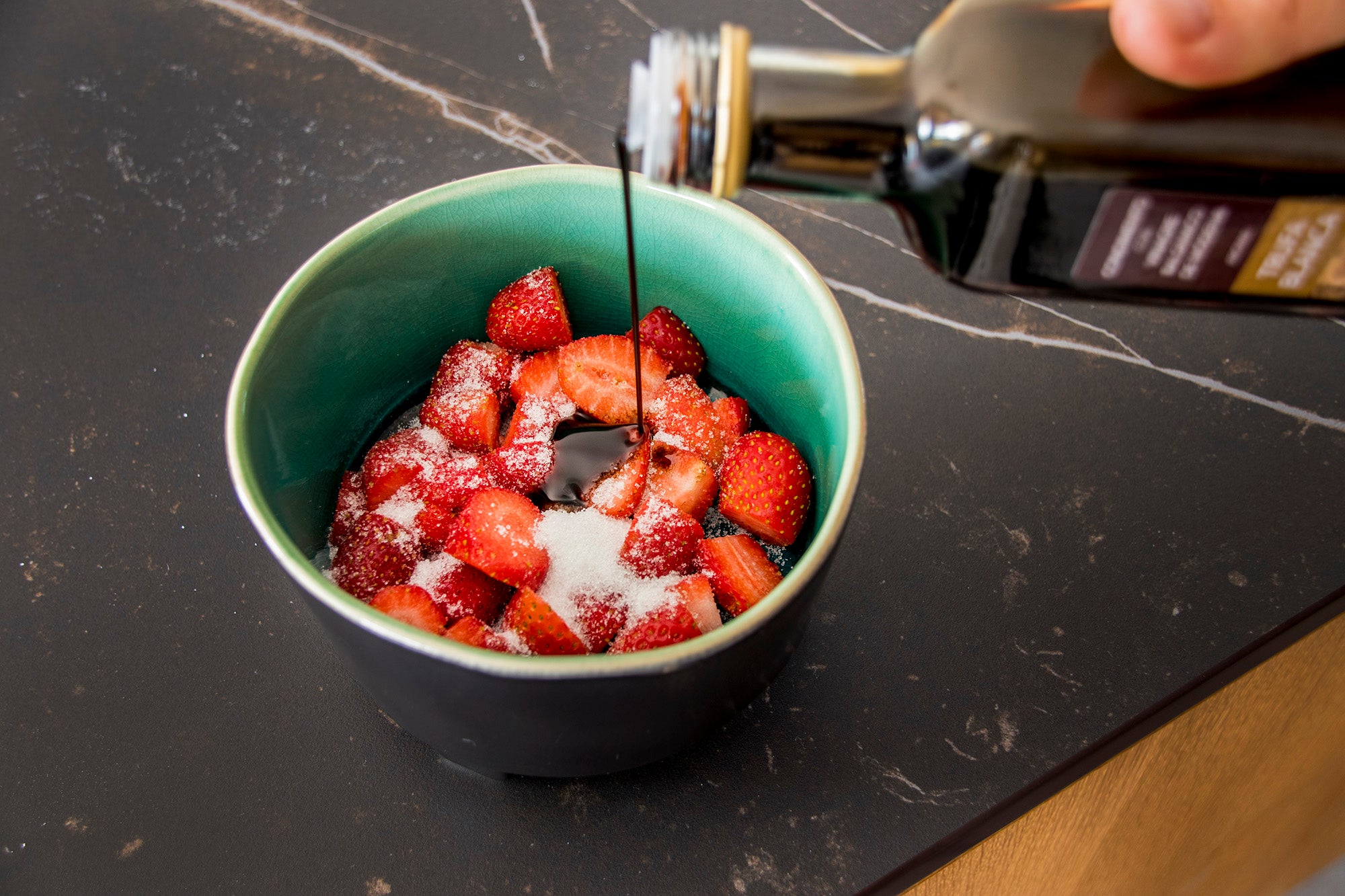 Ingredientes para las fresas con vinagre trufado y chantilly