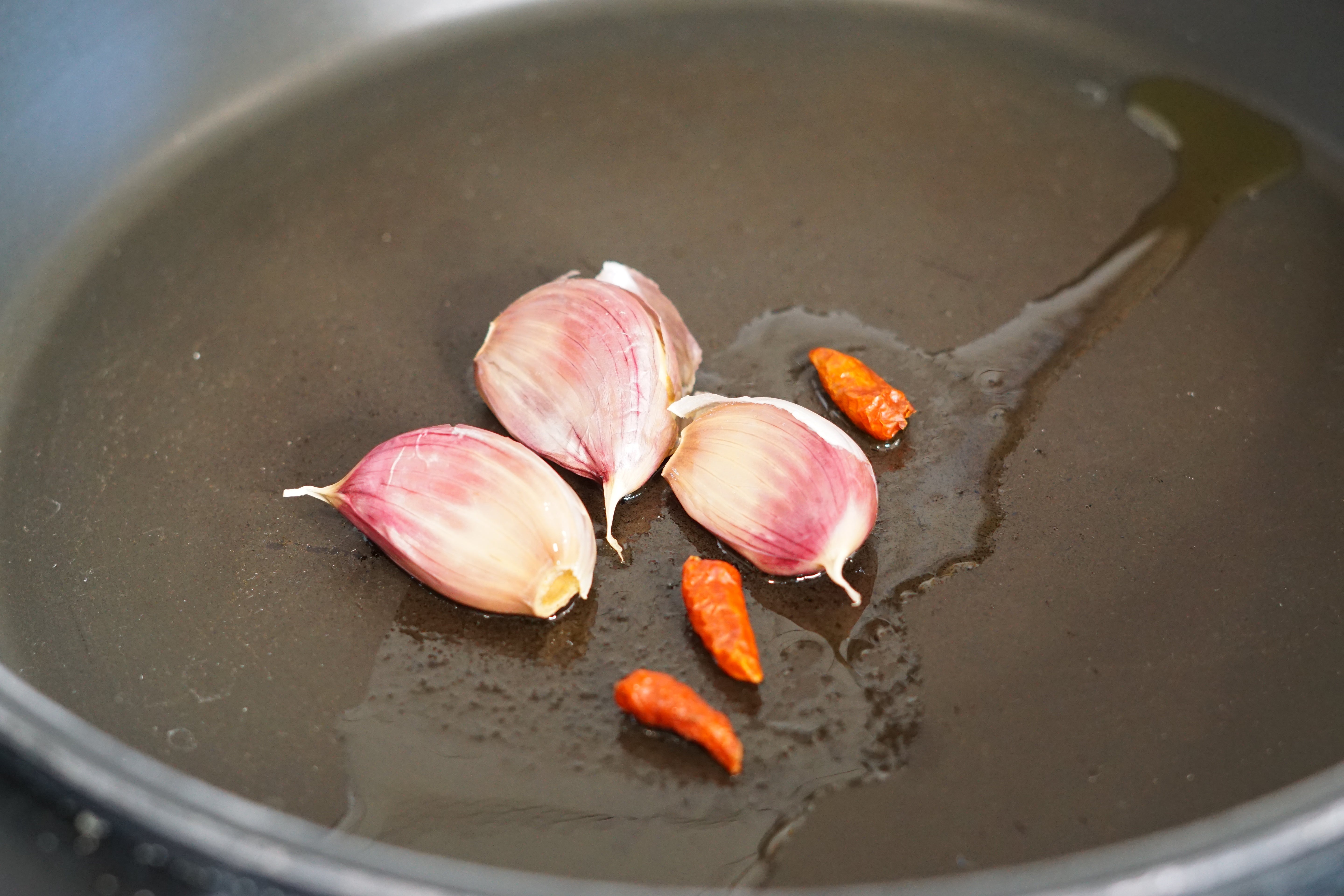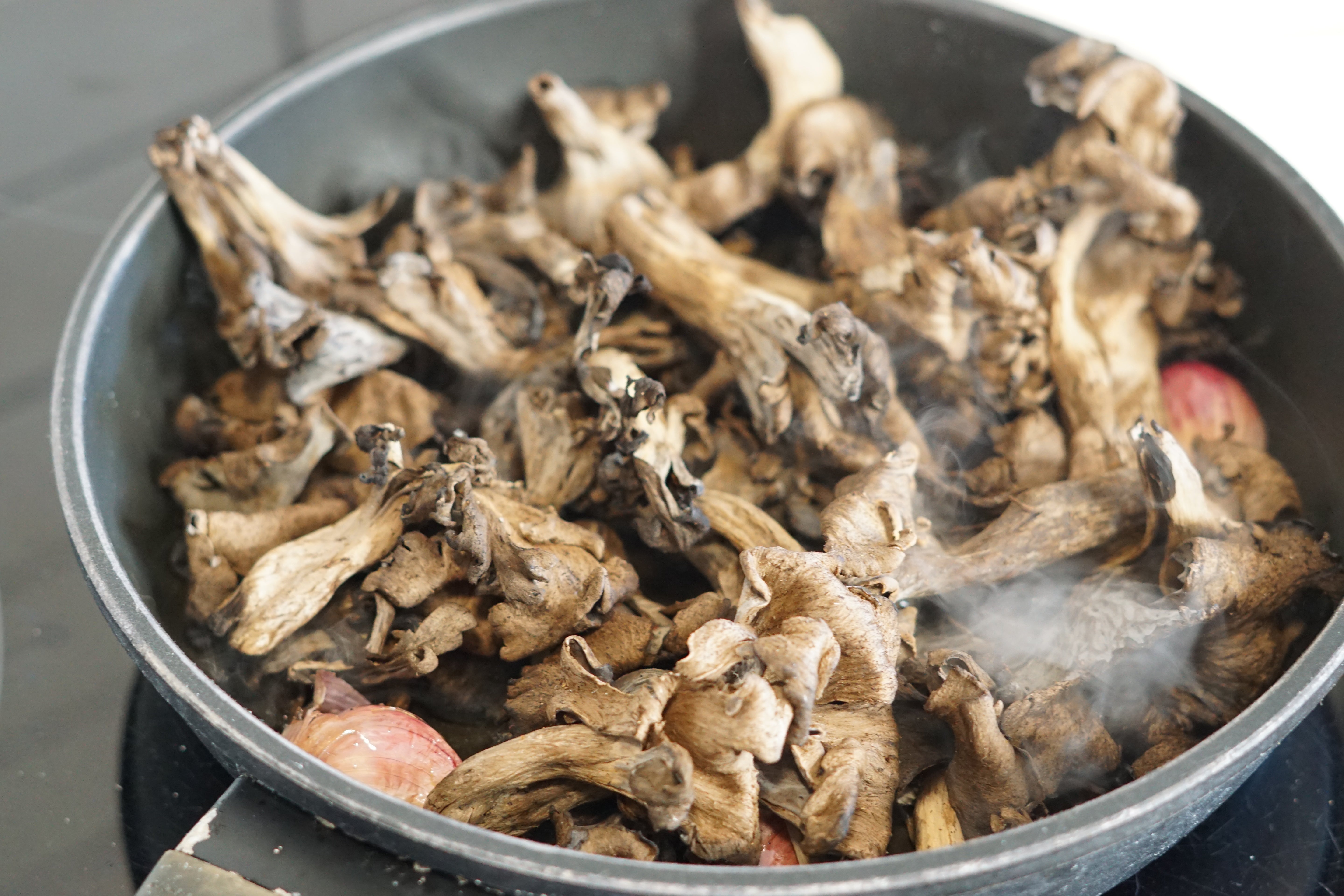 Ingredientes para los gnocchi con trompetas de la muerte y guindilla