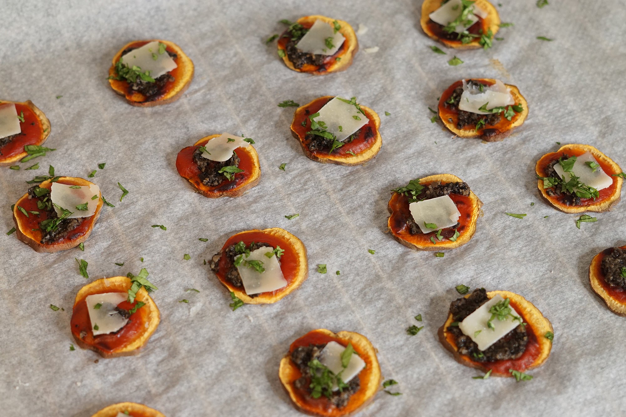 Ingredientes para los montaditos de boniato con brisura y grana padano