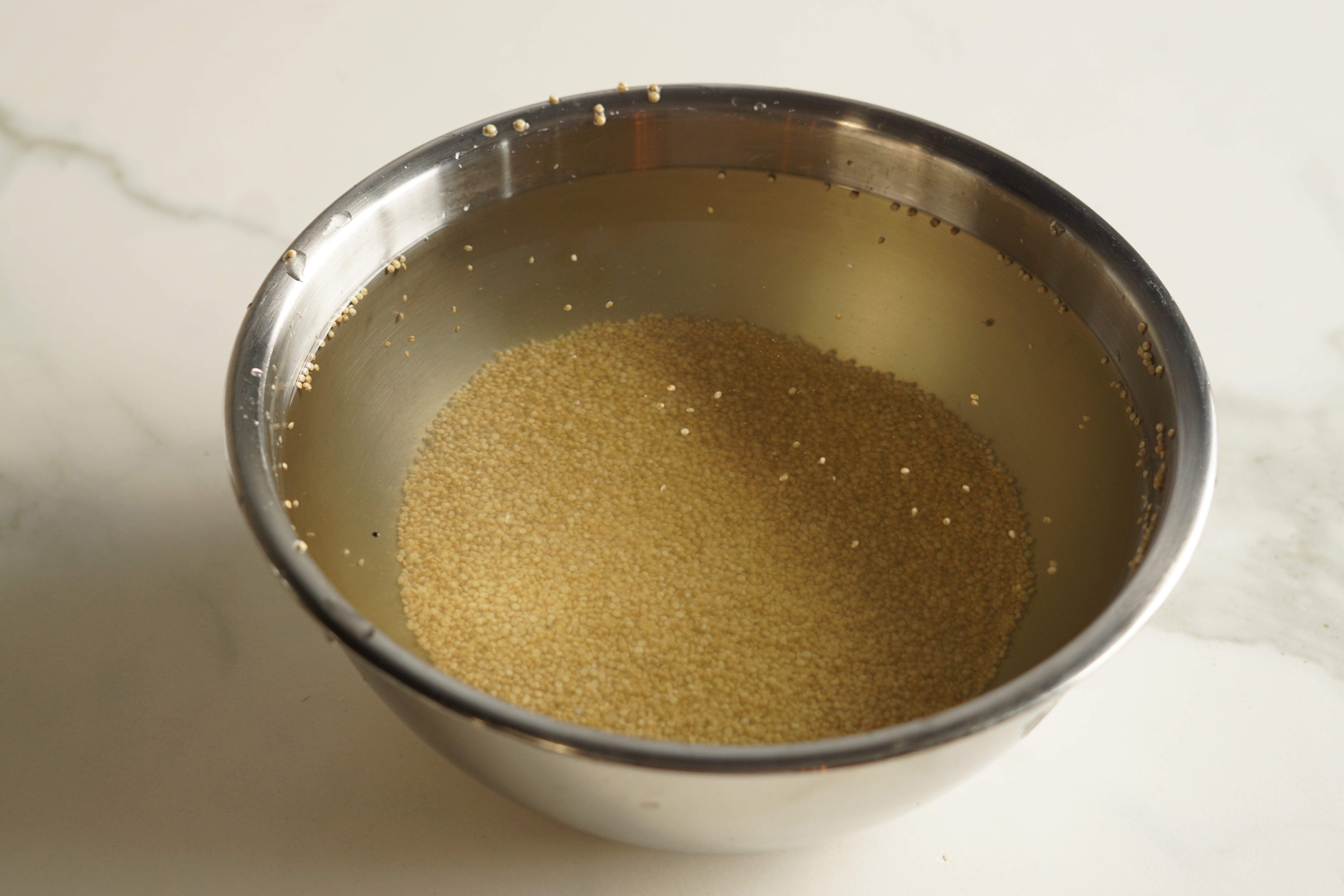 90g Quinoa pesada en seco (hidratada pesará 170g)