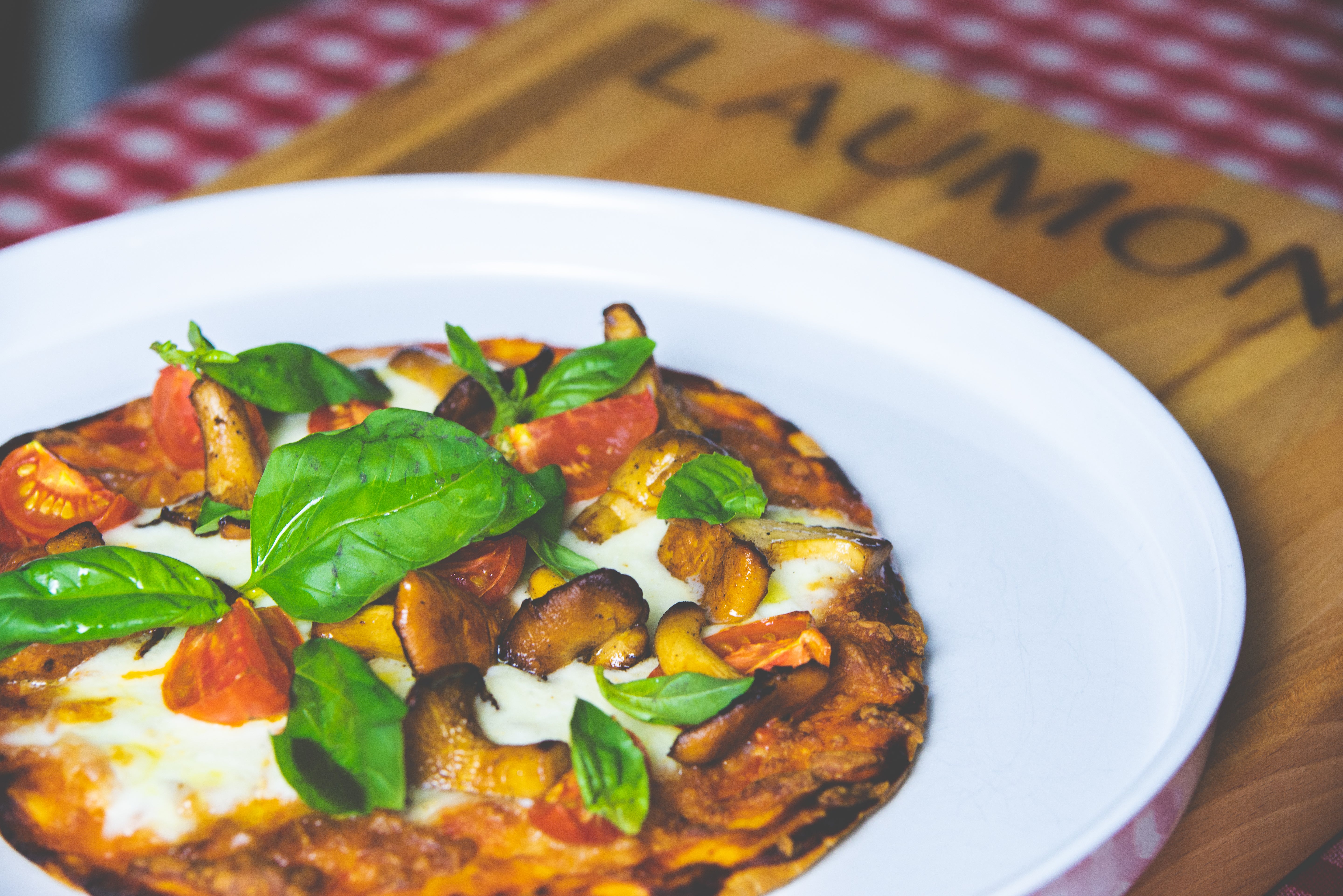 Ingredientes para la pizza margarita con rebozuelos salteados