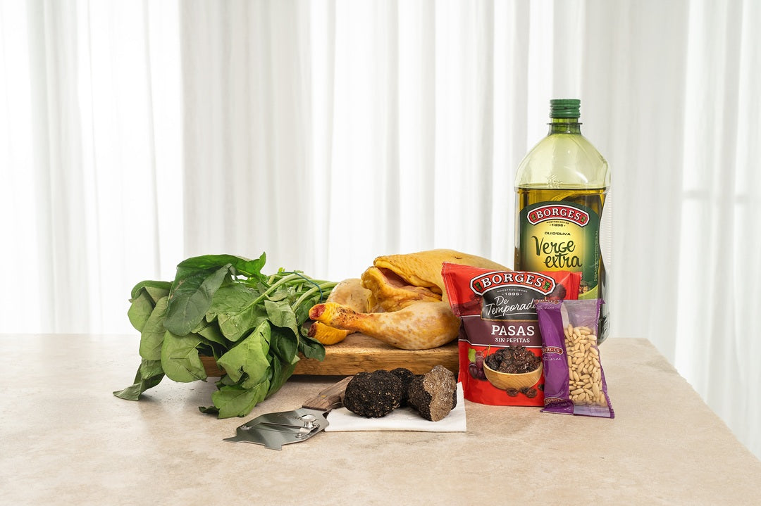 Ingredientes para el Pollo relleno con trufa, jugo de asado y manzana con patata