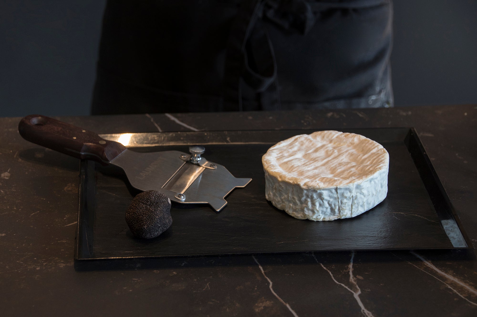 Una elaboració simple però exquisida que transforma un formatge camembert tradicional en una experiència gurmet gràcies a la tòfona negra de Laumont . El repòs en fred permet que les aromes s'integrin profundament, creant un mos elegant i ple d'umami.