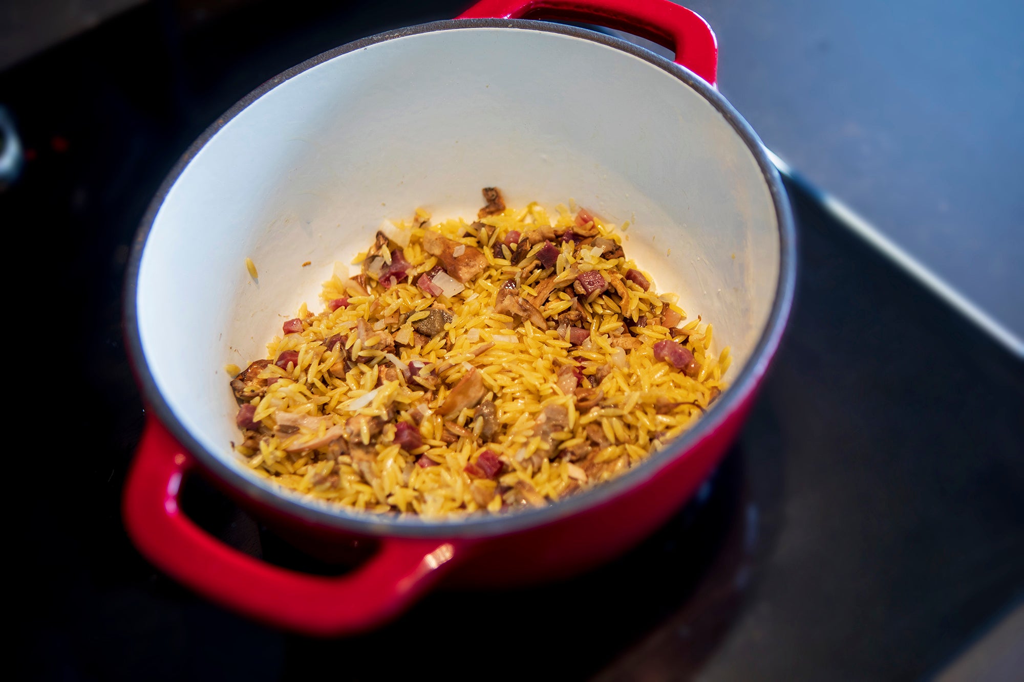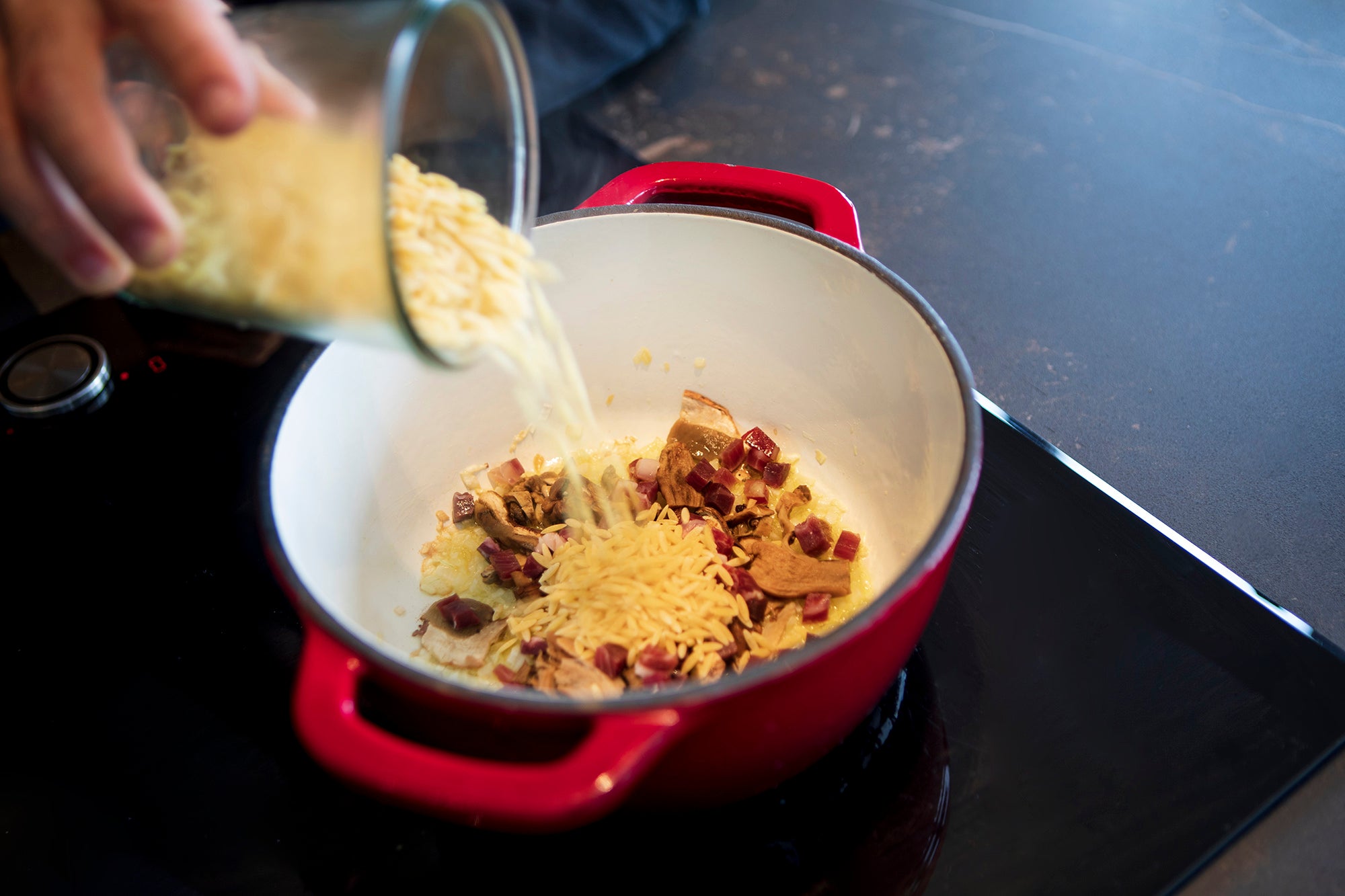 Ingredientes para el risotto de pasta con boletus y jamón ibérico