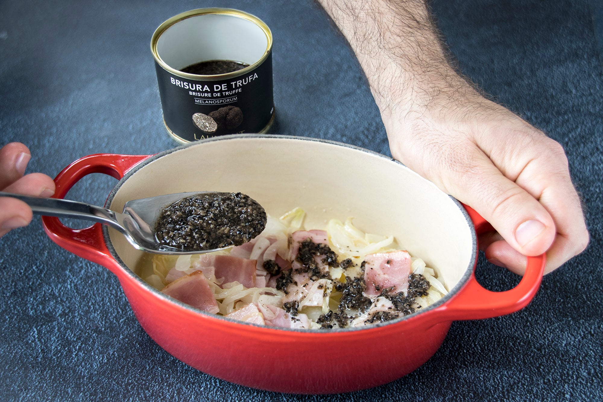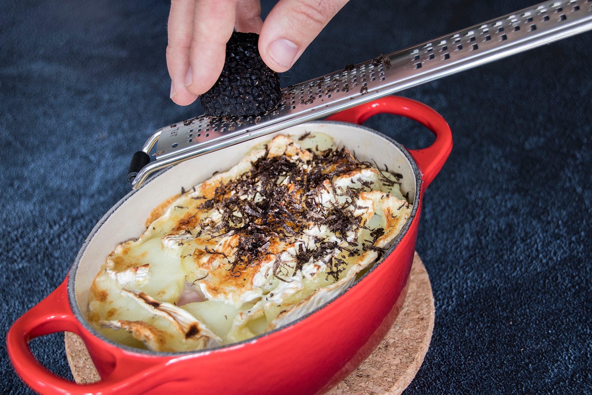 La tradicional tartiflette francesa es transforma en una experiència gourmet amb el toc de brisura de tòfona negra Laumont i ganivetes de tòfona fresca . Aquest plat reconfortant, cremós i aromàtic és ideal per als dies freds o per compartir en un sopar especial.